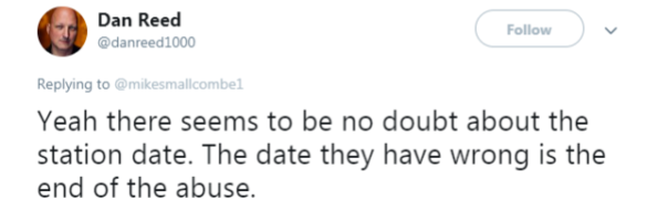 “Yeah there seems to be no doubt about the station date. The date they have wrong is end of the abuse.”