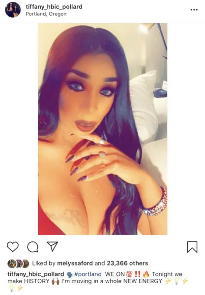 Reality star queen, Tiffany “New York” Pollard, recently posted a new social media photo, revealing a fresh new look. New York, 37, shared a selfie with her signature cleavage, adding dark makeup and a seemingly lighter complexion. The reality star captioned the image: