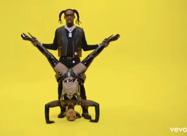 Hip-Hop couple, Offset and wife, Cardi B can’t keep their hands off each other in their newly released music video for their collaboration entitled, ‘Clout,’ from Offset’s debut album, Father of 4. In the video, the couple turned up the heat as they appeared in various sexual positions in leather throughout the visual. Offset (real name Kiari Cephus) begins the video tuning up a yellow piano with a black and white, Jason like mask on.