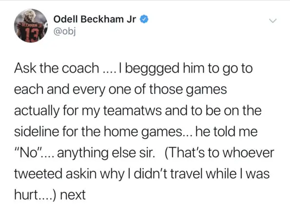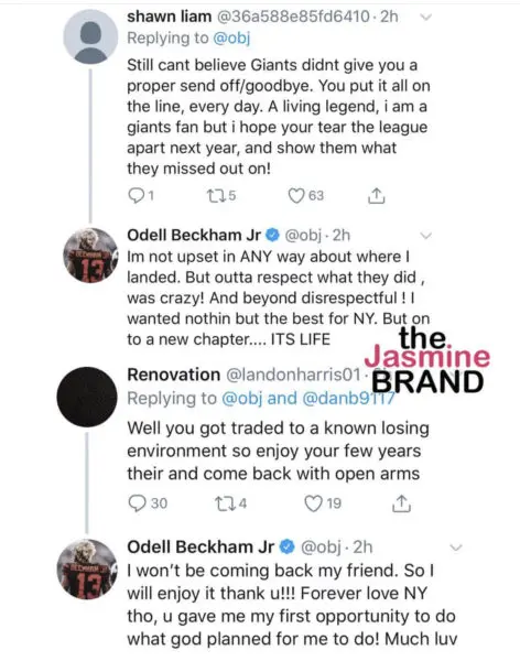 Beckham, Jr. speaks on being traded from the Giants while responding to another fan, adding how he felt disrespected in how the trade went down.
