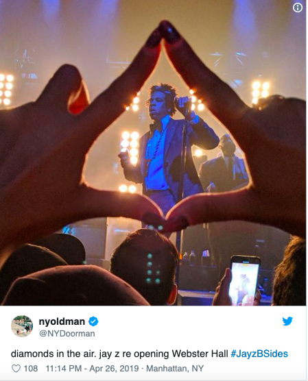 Jay-Z put on quite the show at Webster Hall in New York City Friday. It was an intimate setting in the venue, which seats 2,500. The highly-anticipated concert, which was of course sold out, also marked the spot’s opening after undergoing renovations for more than a year. Some of the decor featured a huge disco ball with the Roc-A-Fella logo on it.
