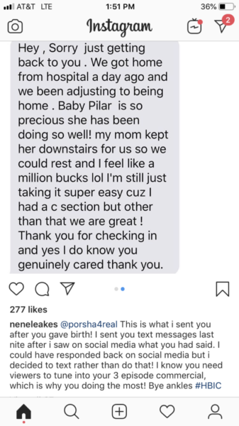 In a “Watch What Happens Live” episode with Andy Cohen, Porsha revealed that NeNe sent her an official cease and desist letter to remove the posts with her text messages from social media. The Decatur diva dished: