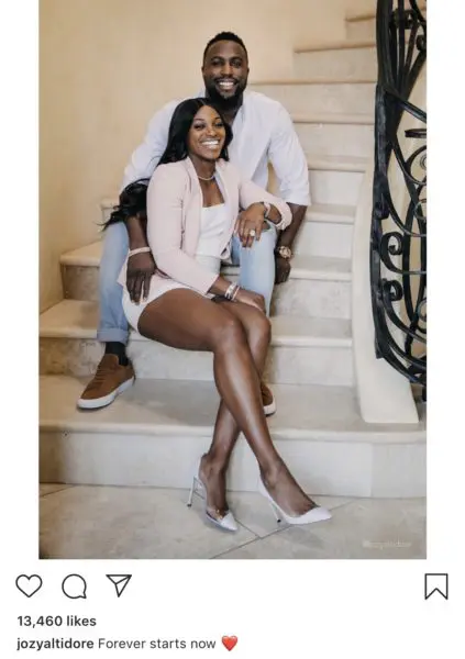 Altidore, 29, is in his fifth season with Toronto FC of Major League Soccer. He is one of the most prolific scorers in U.S. national team history, as he’s netted 41 goals in 110 appearances. The soccer star adds a photo on Instagram of his happy moment with his now fiancé, both sitting on stairs in their home marking a new start together.