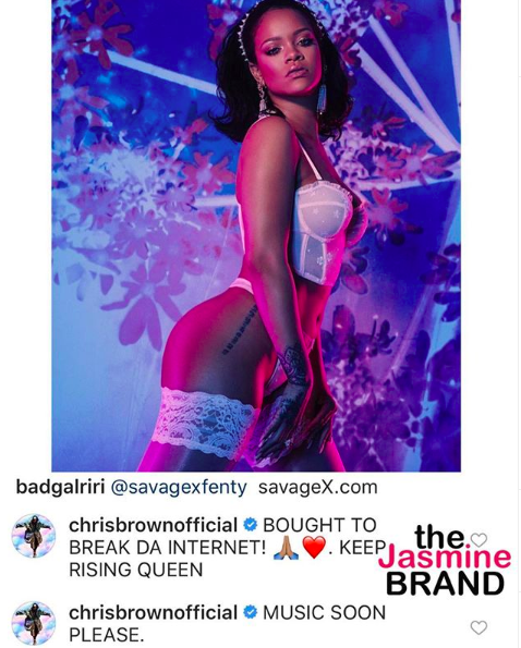 On any other day, this might seem like Brown and his longtime girlfriend flirting with each other. But interestingly enough, his post came just hours after he made headlines for complimenting his ex-girlfriend, Rihanna. He commented on Rihanna’s latest promo for SavageXFenty and said,