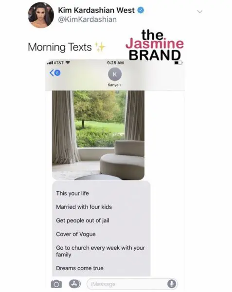 Kanye Sweetly Texts Kim Kardashian – This Is Your Life, Dreams Come True