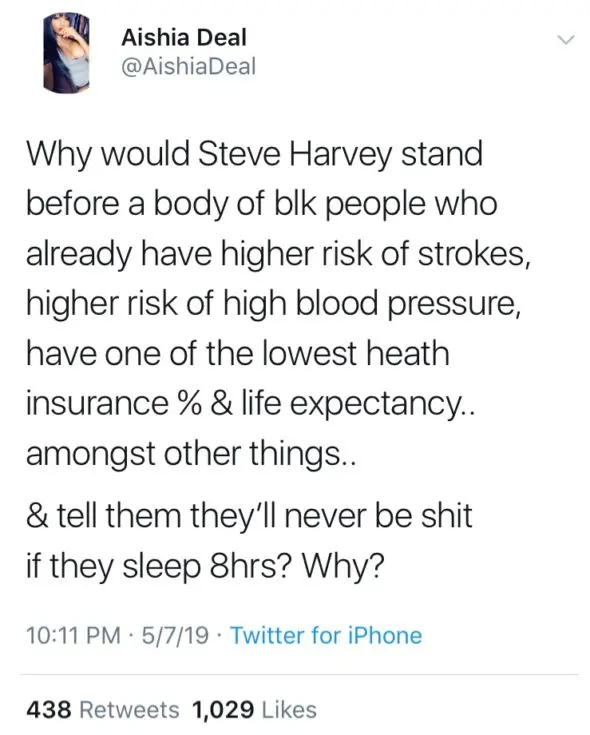 There are many things that are guaranteed on social media and being called out on comments deemed controversial is one of them. Although he’s been called out before for controversial comments, Steve Harvey is feeling the wrath of social media users like no other after he stated that people should skip getting the required 8 hours of sleep in favor of being wealthy.