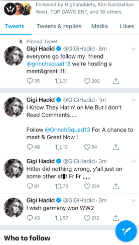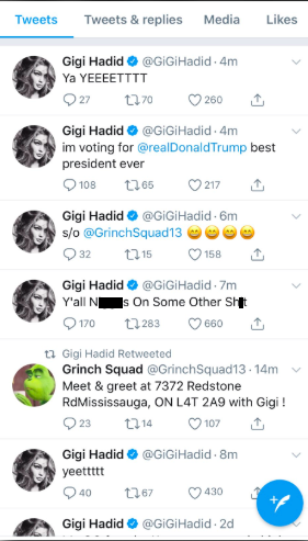 Gigi Hadid Responds To Twitter Hack After Racist & Homophobic Slurs Are Tweeted From Her Account