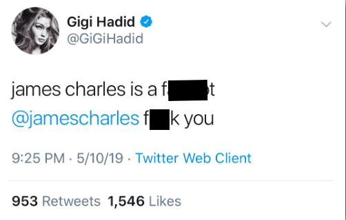 A homophobic slur was targeted at makeup artist James Charles.