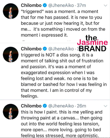 Jhene Aiko spoke on what the song is truly about. See her tweets below.