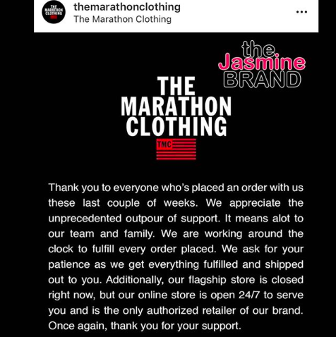 “Thank you to everyone who’s placed an order with us these last couple of weeks. We appreciate the unprecedented outpour of support. It means alot to our team and family,” the store’s message reads. “We are working around the clock to fulfill every order placed. We ask for your patience as we get everything fulfilled and shipped out to you. Additionally, our flagship store is closed right now, but our online store is open 24/7 to serve you and is the only authorized retailer of our brand. Once again, thank you for your support.”
