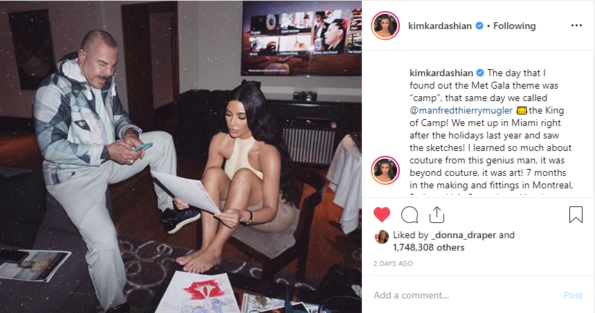 “@kimkardashian The day that I found out the Met Gala theme was “camp”, that same day we called @manfredthierrymugler the King of Camp! We met up in Miami right after the holidays last year and saw the sketches! I learned so much about couture from this genius man, it was beyond couture, it was art!”