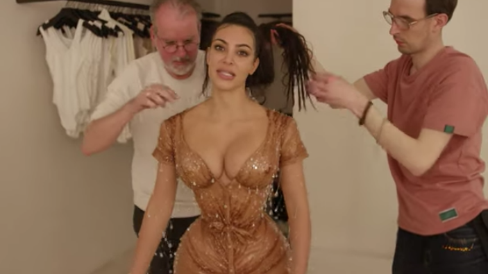 Reality TV star/beauty mogul Kim Kardashian is known for pushing the envelope when it comes to her wardrobe choices, but we had no idea just how grueling her slippery-when-wet Met Gala look was for her.