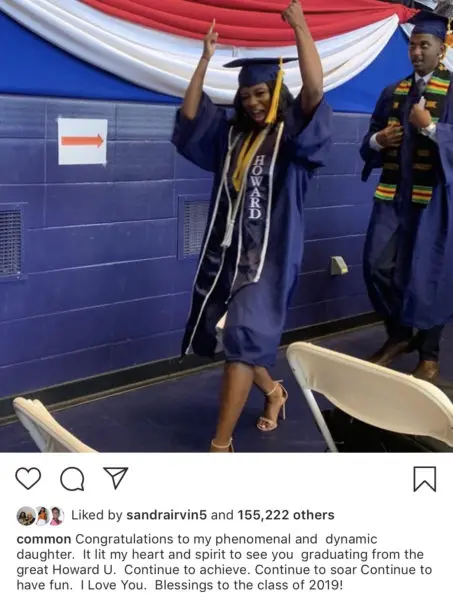 Actor/rapper Common shares on Instagram his proud dad moment over in Washington D.C. as his daughter, Omoye Lynn, 22, graduated from one of the top HBCU’s, Howard University. He says,