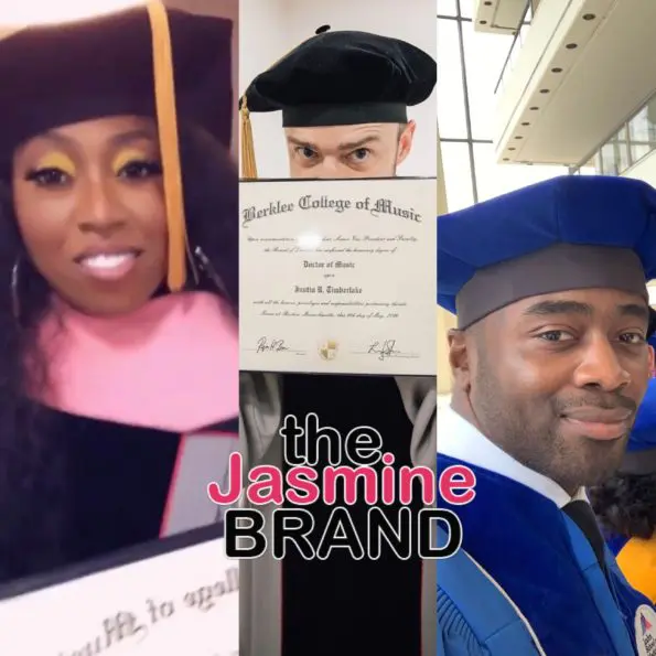 A host of celebrities over the weekend received honorary doctorate degrees from colleges for their achievements and influences. Artists Missy Elliot, 47, and Justin Timberlake, 38, both received their degrees from Berklee College of Music on Saturday. In a statement, Berklee College says,