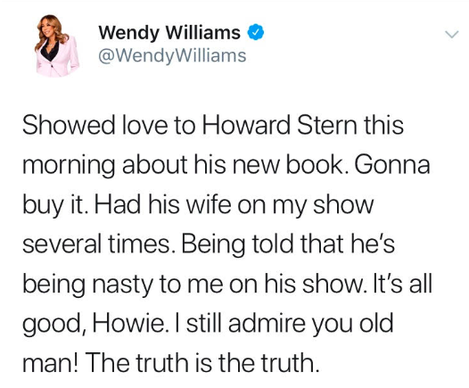 Offended, Wendy Williams took to Twitter about Howard Stern’s clap-back: