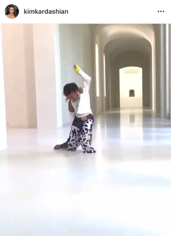 Mom Kim Kardashian posted the incredibly cute video of her daughter lip-syncing to “Old Town Road” in full cowgirl costume and some sweet dance moves. Kim explained the reasoning for the family-friendly video in her caption—and it’s all thanks to her maternity leave after welcoming her fourth child, a baby boy.