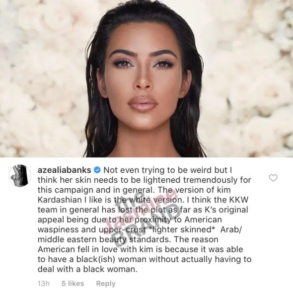 According to her comments, which are quite lengthy, Banks thinks that Kardashian should “tremendously” lighten the photos for the campaign (and in general) because she prefers “the white version” of the Keeping Up With The Kardashians star.