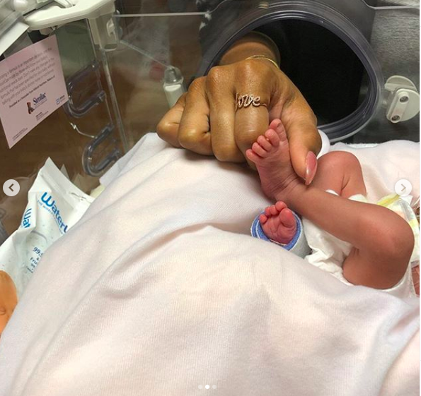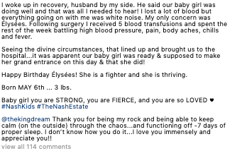 “Seeing the divine circumstances, that lined up and brought us to the hospital…it was apparent our baby girl was ready & supposed to make her grand entrance on this day & that she did! Happy Birthday Élysées! She is a fighter and she is thriving.”