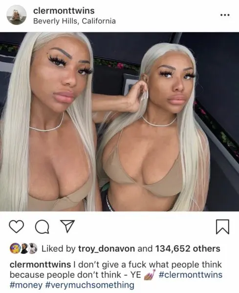 “I don’t give a f*ck what people think because people don’t think – YE #clermonttwins #money #verymuchsomething”