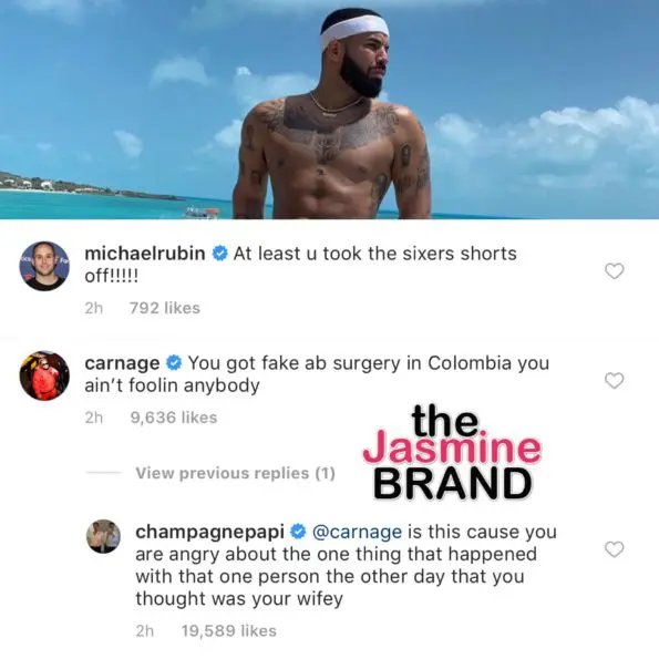 The rapper was taunted by a few in his comments, including Philadelphia 76ers co-owner, Michael Rubin who still feels a way in the aftermath of his team taking a loss to Drake’s Raptors. Drake “cursed” Rubin’s team by wearing 76ers shorts during game 7. Rubin wrote under the comments: