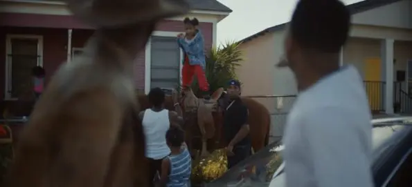 After being spotted, Nas X travels all the way to the present day inner-city hood, which leads to some hilarious reactions from onlookers as he rides his horse through the neighborhood.