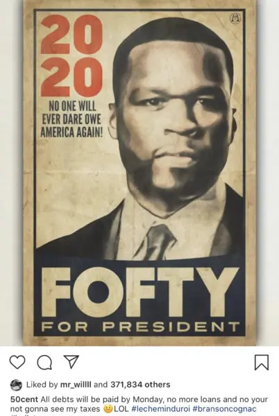 In a recent Instagram post, 50 cent added a Presidential campaign poster that says “Fofty For President.” Poking fun of Donald Trump, 50 adds the caption,
