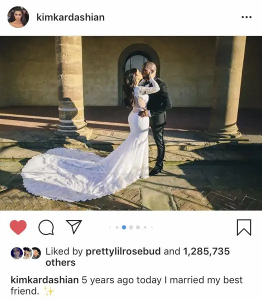 Mrs. West took to Instagram to wish her hubby a happy five years of matrimony.