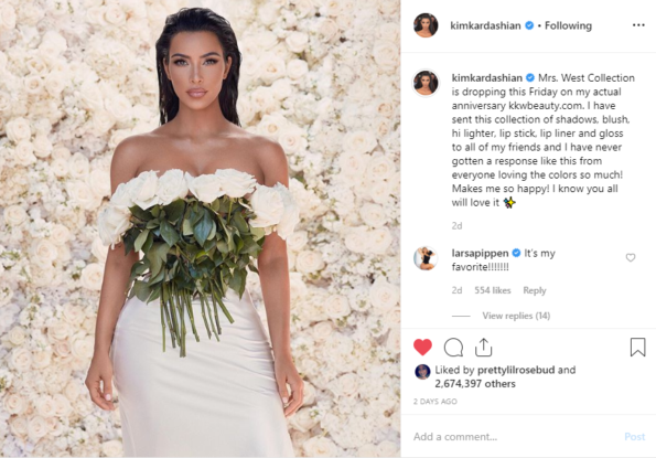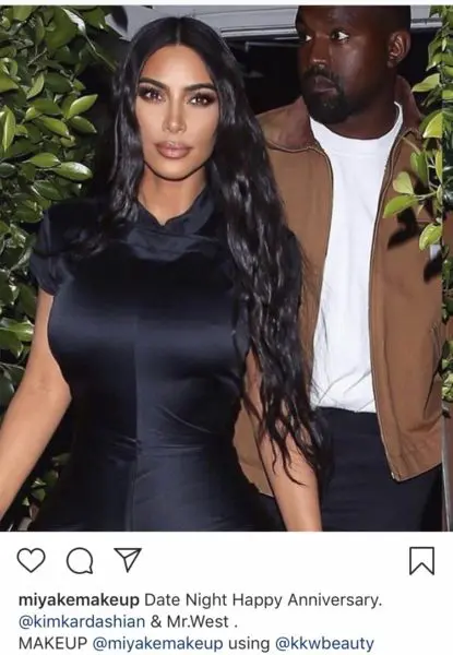 Kim Kardashian was noted to be rocking a fresh beat courtesy of her cosmetics line, KKW Beauty. Products from this particular collection, also, commemorate her wedding anniversary. The Mrs. West collection can be worn together to recreate the make-up look she wore on their wedding day.