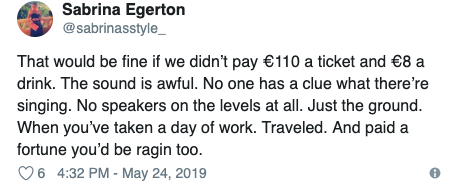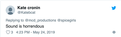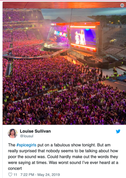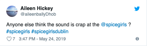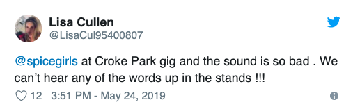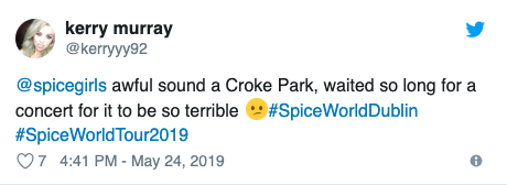 There’s something wrong when the crowd at @spicegirls concert are all sitting down because no one has a clue what song is on because the sound really is THAT bad. @mcd_productions @CrokePark @IrishTimes @LovinDublin #SpiceWorldTour #SpiceGirl pic.twitter.com/QkENc7BJ8Y