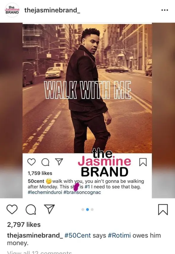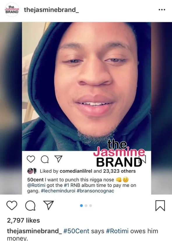 50 took to Instagram to let everyone know that Rotimi (who plays Dre on Power) allegedly owes him $300K and he wants him to pay up. He also noted that since Rotimi currently has a successful R&B album out that he just released, he has the money to finally pay what he owes.