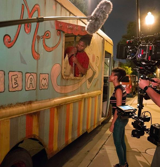 Jason Mitchell, Tiffany Boone on set of ‘The Chi’
