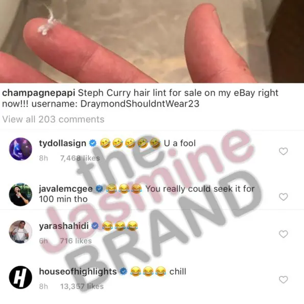 “Steph Curry hair lint for sale on my eBay right now!!!! Username: DraymonShouldntWear23”