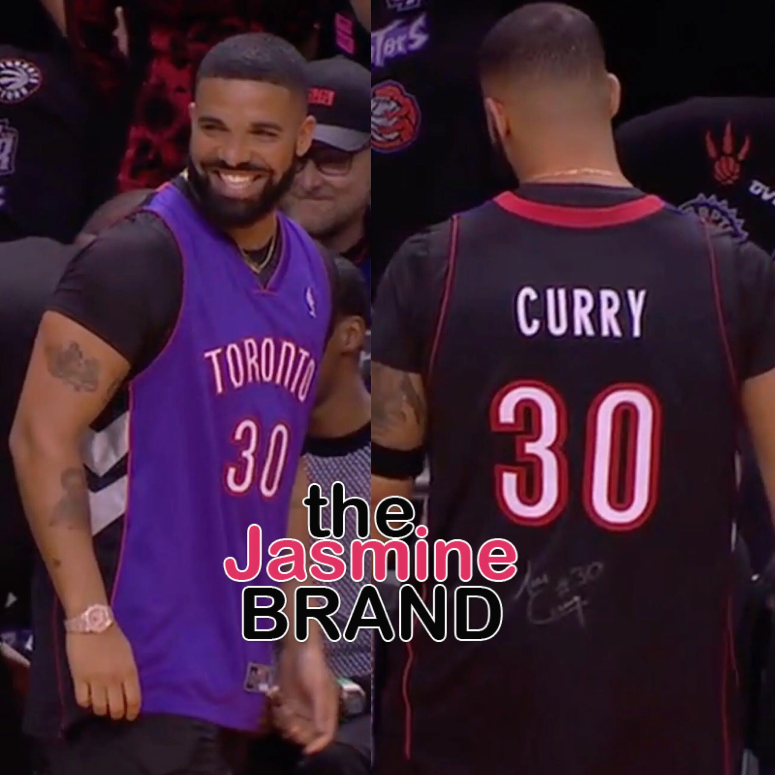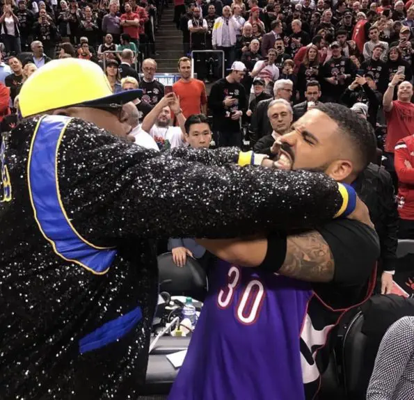 Drake Trolls Steph Curry At NBA Finals, Wears Father’s Raptors Jersey & Says He Has Curry’s Hair Lint For Sale