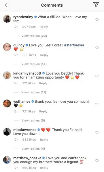 Some of the series cast members commented to show their appreciation and support for Daniels.