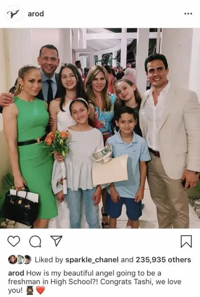“@arod How is my beautiful angel going to be a freshman in High School?! Congrats Tashi, we love you!”