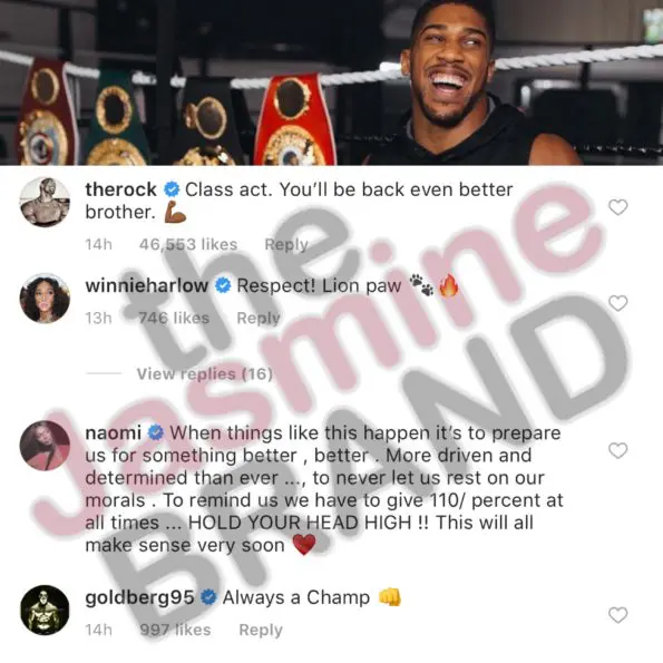 Joshua’s message was received by several notable celebrities including wrestling legends The Rock and Goldberg. Supermodel Naomi Campbell gives an inspiriting message to the former champion saying,