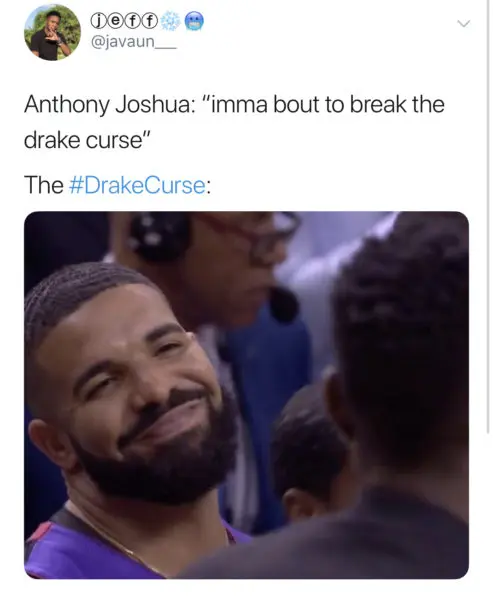 After his defeat, fans are pointing the fingers at Drake for the historical lost. One fan responds to the rapper enjoying the curse rumors writing,