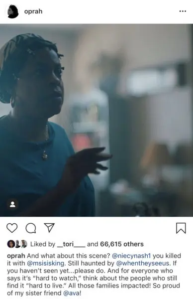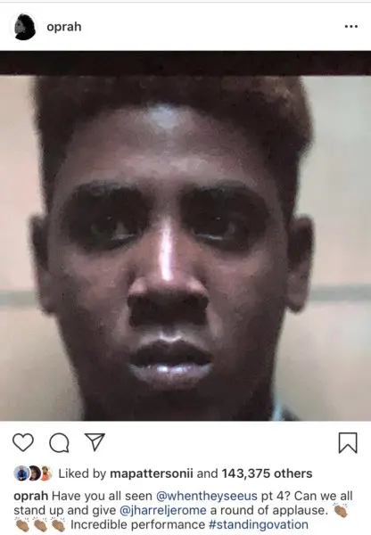 “Last week I went to the premiere of @whentheyseeus at the @apollotheater. And let me tell you, @ava’s done it again. The compelling story of five Black and Latino teenagers wrongly convicted of a crime they did not commit is a story that must be seen. Hope you stream it today on @netflix. #WhenTheySeeUs“
