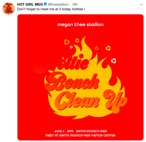 Megan Thee Stallion is a woman of her word. The rapper announced earlier this week that she wanted to start making moves that are eco-friendly. This came after a fan commented on her IG Live and said Megan should start raising awareness about global warming. She went beyond just doing research and vowing to use less plastic. She said she wanted to host a beach cleanup for all of her fans, and that’s exactly what she did just days later at the Santa Monica pier.