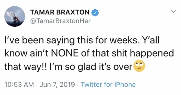 “I’ve been saying this for weeks. y’all know ain’t NONE of that sh*t happened that way!! I’m so glad it’s over”