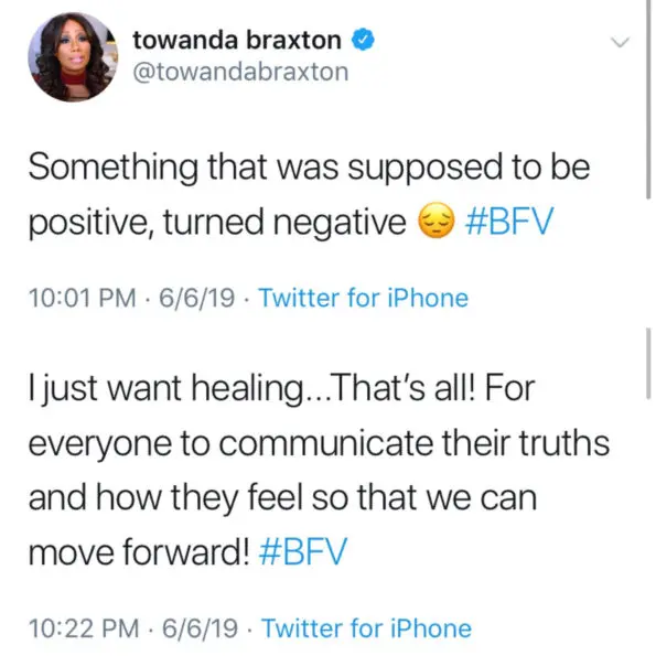 Towanda insists that she wanted to heal the tension in her family, tweeting her disappointment.