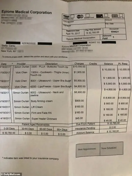 The invoices show that – despite denying having them – Mariah Carey has underwent at least six cosmetic surgeries, including butt fillers, fat freezing, and firming treatments.