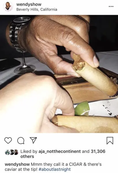 But, perhaps, the most talked about of her company were Wendy’s hints at romantic date nights. She gave us several clues that she was having fun hanging out with a younger man. She posted a photo of the mystery date’s hand at a Beverly Hills cigar bar with the following caption:
