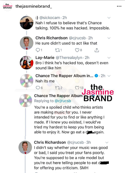 Chance seemed very unbothered by what the fan had to say. He responded with,
