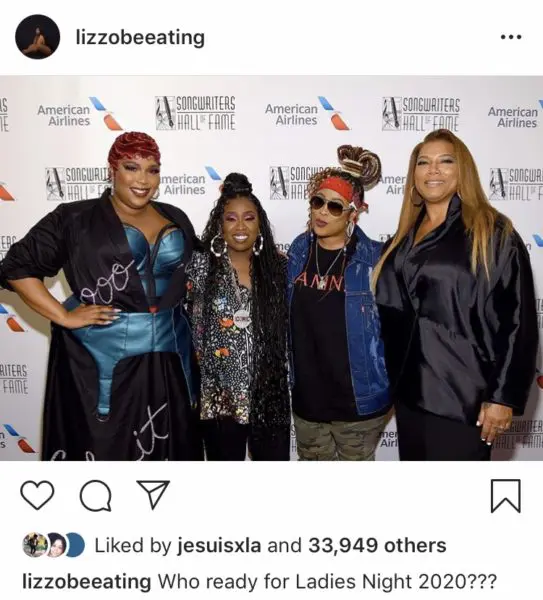 .@lizzo my sis i love you down sis ???? Thank you sooo much for the tribute you were AMAZING per usual & my sis @sosobrat i love you! You killed it?? and in this video yes that is my sis @IAMQUEENLATIFAH twerking but you cant see her face tho????? #SongwritersHallOfFame pic.twitter.com/nIHU5v5Ngt