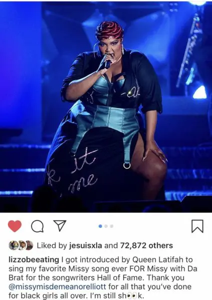 “@lizzobeeating I got introduced by Queen Latifah to sing my favorite Missy song ever FOR Missy with Da Brat for the songwriters Hall of Fame. Thank you @missymisdemeanorelliott for all that you’ve done for black girls all over. I’m still shook.”