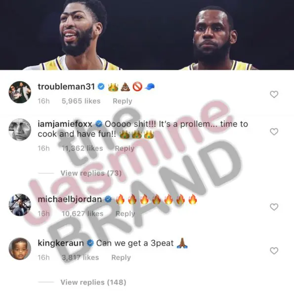 As the blockbuster trade exploded over social media, several notable celebrities took to James’ comments in celebration including rapper T.I. and Black Panther actor, Michael B. Jordan. Comedian and actor, Jamie Foxx adds a few emojis with writing