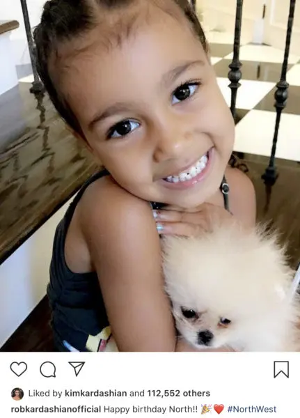 North’s only uncle, Rob Kardashian also shared a birthday message posting an adorable photo of North with her dog named, Sushi. He writes,