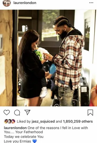 Both Lauren London and Tanisha Foster took to Instagram with loving words about their late children’s father. Lauren posted a photo of Nipsey and Baby Kross with the following caption: