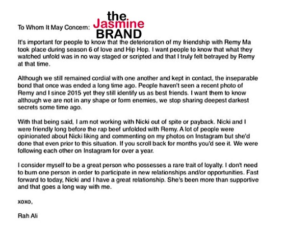 Things seemed to get worse when Rah Ali befriended Remy Ma’s arch nemesis, Nicki Minaj, and even appeared in Nicki’s “No Frauds” video which was a diss toward Remy.